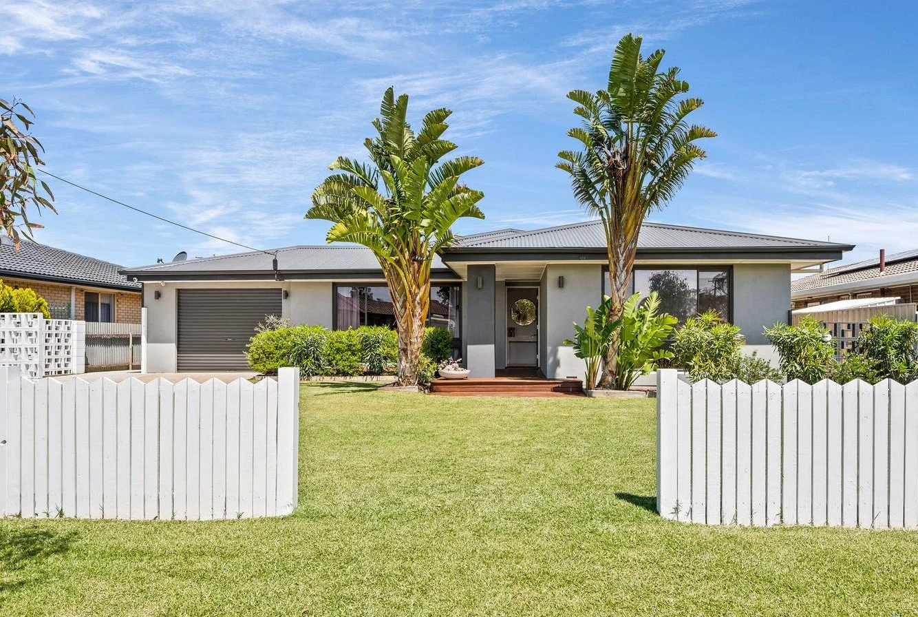 Extensively renovated throughout, the home has a spacious open plan living area complemented by beautiful timber flooring and a sleek kitchen. This designer kitchen is just divine with quality appliances, stone benchtops with waterfall edge, undermount sink, pendant lighting, and a peninsula with room for seating.